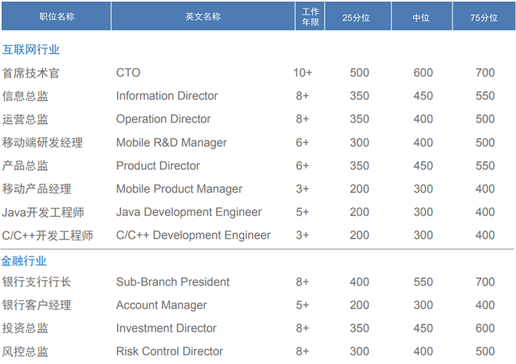 薪酬趋势:互联网行业整体涨幅15%左右。