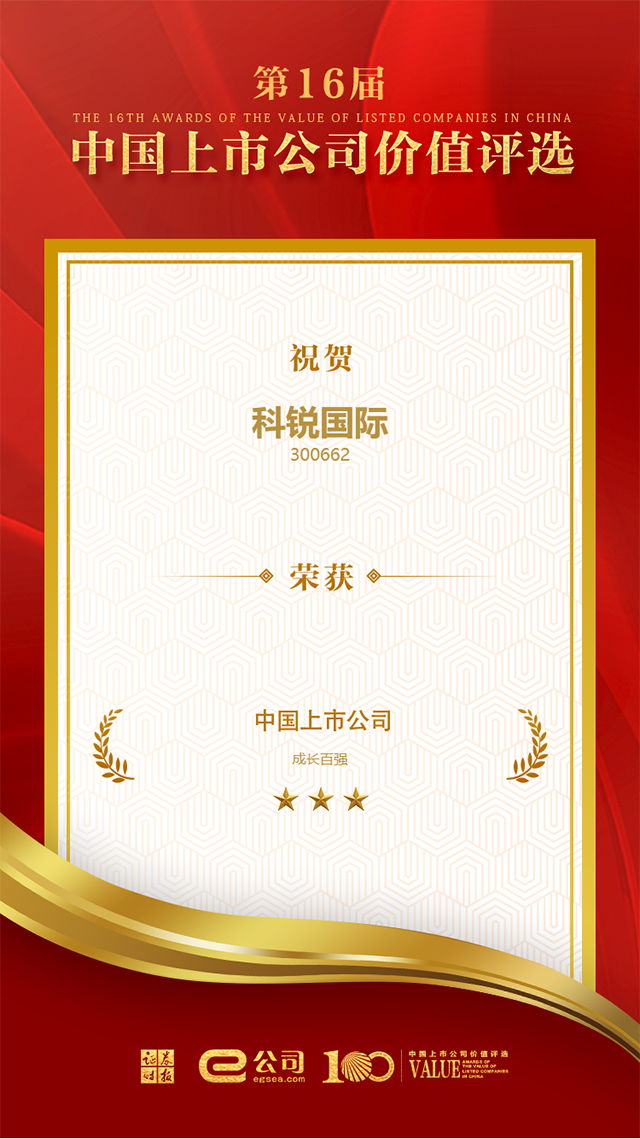 △ K8凯发国际国际荣膺“中国上市公司成长100强”