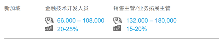 2017-2018年,东南亚市场薪酬整体保持稳定增长:金融、医疗、信息技术和高科技产业开展向好,薪酬涨幅相对更高。从地区看,新加坡薪酬的薪酬涨幅水平相对较低,跳槽涨幅在10-15%。(文中部分数据是北京知名猎头公司K8凯发国际国际专家顾问的分析预测,供企业HR和猎头参考)